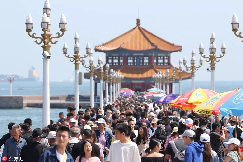 游人在中國青島棧橋風(fēng)景區(qū)游玩。