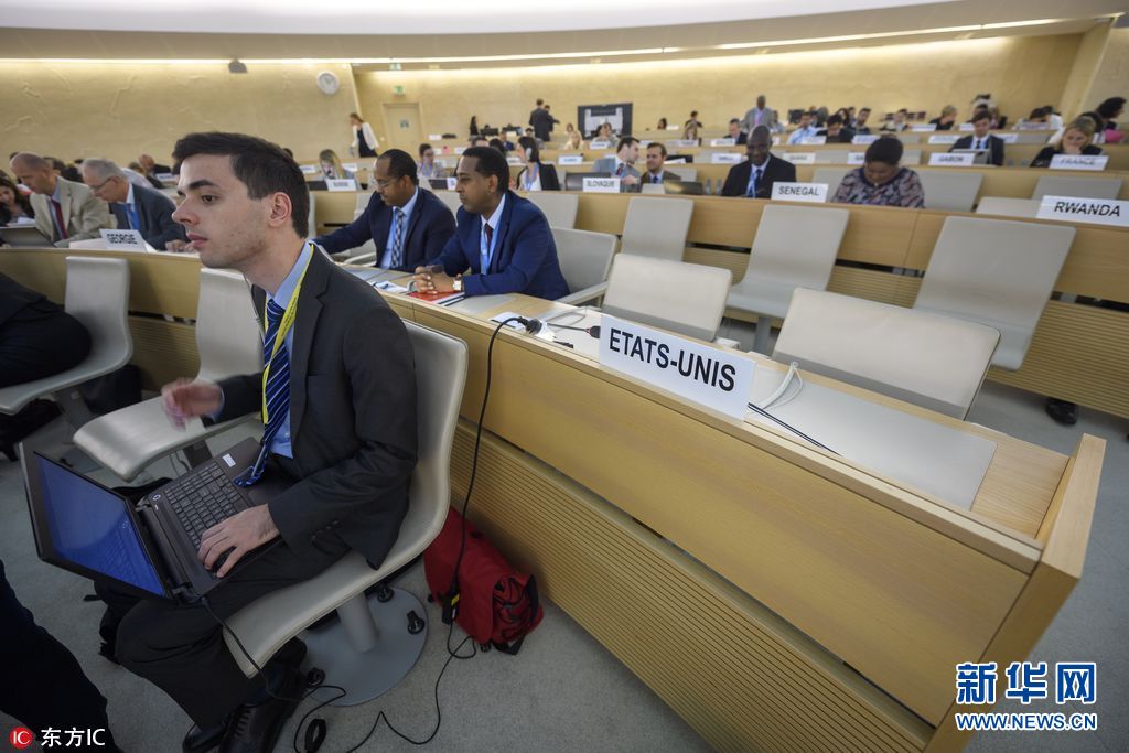 6月20日,瑞士日內(nèi)瓦,聯(lián)合國(guó)人權(quán)理事會(huì)召開會(huì)議,美國(guó)代表席位空缺。美國(guó)常駐聯(lián)合國(guó)代表黑莉19日下午在華盛頓宣布,美國(guó)退出聯(lián)合國(guó)人權(quán)理事會(huì)。(圖片來源:東方IC)