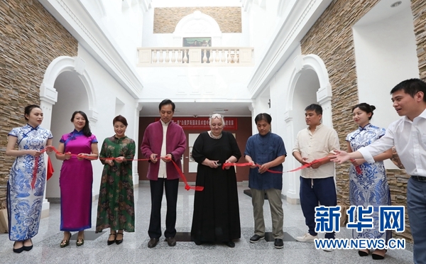 6月21日下午,中國(guó)畫家與白方嘉賓一起出席在白俄羅斯國(guó)家美術(shù)館舉辦的中國(guó)書畫家作品邀請(qǐng)展開幕式。新華網(wǎng)記者 魏忠杰攝
