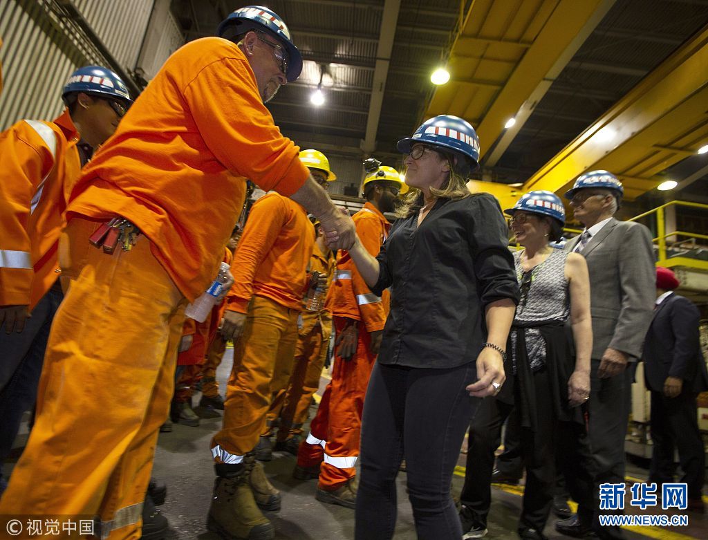 當(dāng)?shù)貢r(shí)間2018年6月29日,加拿大漢密爾頓,加拿大外交部長(zhǎng)弗里蘭、經(jīng)濟(jì)發(fā)展部長(zhǎng)貝恩斯和勞工部長(zhǎng)哈伊杜造訪斯特爾科鋼鐵公司,并共同宣布從7月1日起,加拿大將對(duì)約126億美元從美國(guó)進(jìn)口的商品加征關(guān)稅,以報(bào)復(fù)特朗普政府對(duì)加拿大鋼鋁產(chǎn)品加征關(guān)稅。他們還表示,加拿大政府將向本國(guó)鋼鋁產(chǎn)業(yè)和制造業(yè)提供約15億美元財(cái)政援助。(圖片來源:視覺中國(guó))