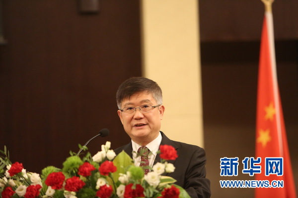 中國駐白俄羅斯大使崔啟明在獎學金頒發(fā)典禮上致辭。新華網(wǎng)記者 魏忠杰攝