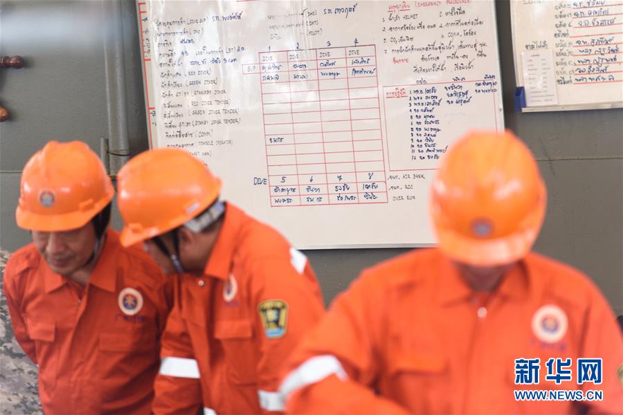 7月8日,在泰國普吉,中國交通運輸部廣州打撈局救援隊成員參與救援。