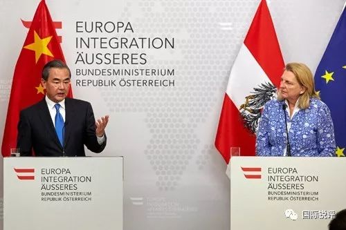 當(dāng)?shù)貢r(shí)間2018年7月5日,國(guó)務(wù)委員兼外交部長(zhǎng)王毅在維也納同奧地利外長(zhǎng)克奈斯?fàn)柟餐瑫?huì)見記者(圖自外交部)