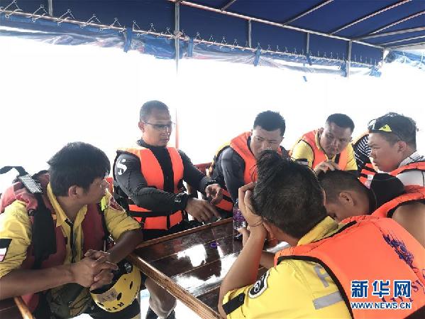 7月8日,在泰國(guó)普吉,來(lái)自民間的公羊救援隊(duì)與普吉藍(lán)海救援隊(duì)成員制定救援方案。新華社發(fā)(普吉藍(lán)海救援隊(duì)提供)
