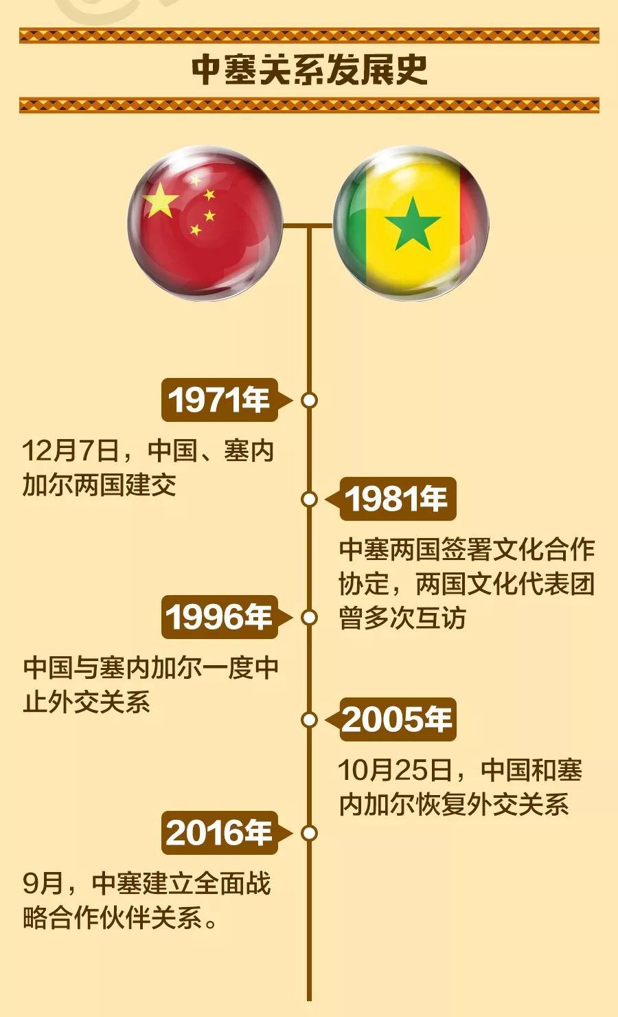 會談開始前,薩勒總統(tǒng)和塞內(nèi)加爾民眾為習(xí)近平舉行了隆重?zé)崃业挠觾x式。當(dāng)習(xí)近平乘車駛向總統(tǒng)府時(shí),早已等候在沿途的萬余名當(dāng)?shù)孛癖娚碇?jié)日盛裝,或揮舞中塞兩國國旗,或擊鼓鳴樂,載歌載舞,熱情歡呼,夾道歡迎。通向總統(tǒng)府的共和國大道上,禮賓馬隊(duì)迎接護(hù)衛(wèi)習(xí)近平。駿馬威武矯健,踏樂前行。抵達(dá)總統(tǒng)府后,習(xí)近平檢閱儀仗隊(duì)。薩勒在總統(tǒng)府樓前迎接。兩國元首親切握手,合影留念。