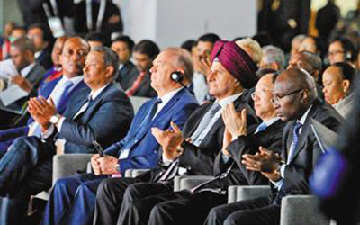在金磚國(guó)家工商論壇會(huì)場(chǎng),會(huì)議主持人在致開幕詞時(shí),提議與會(huì)嘉賓起立鼓掌一分鐘,為金磚國(guó)家這些年取得的合作成就喝彩。坐在本報(bào)記者身旁的一位先生掌聲尤其熱烈,一邊鼓掌,一邊還發(fā)出歡呼聲。他是南非標(biāo)準(zhǔn)銀行總裁蘇卡尼·雅巴舍。
