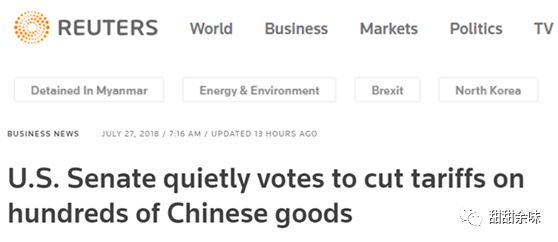 英國路透社日前報(bào)道,美國參議院7月26日通過了一個(gè)名為Miscellaneous Tariff Bill的法案,中文稱為“綜合關(guān)稅法案”或“關(guān)稅雜項(xiàng)法案”。報(bào)道的標(biāo)題頗有意味地用了個(gè)修飾詞“quietly”(靜悄悄地)——《美參議院悄悄通過立法降低數(shù)百種中國商品的關(guān)稅》。
