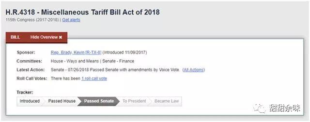 1.從法案本身來看,據(jù)美國國會(huì)官網(wǎng)顯示,其最早提交到眾議院的時(shí)間是2017年9月11日(對應(yīng)法案流程的第一步“Introduced”);下一節(jié)點(diǎn)是2018年1月16日,應(yīng)該也就是眾議院進(jìn)行討論并通過的日期,此后就是1月17日,從這一天起,處理者由眾議院變成了參議院(對應(yīng)流程的第二步“Passed House”);再下一個(gè)節(jié)點(diǎn)就是2018年7月26日了。