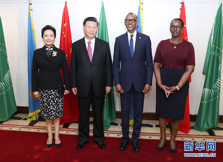 7月23日,國(guó)家主席習(xí)近平在基加利同盧旺達(dá)總統(tǒng)卡加梅舉行會(huì)談。這是會(huì)談前,習(xí)近平和夫人彭麗媛同卡加梅和夫人珍妮特合影。 新華社記者 龐興雷 攝