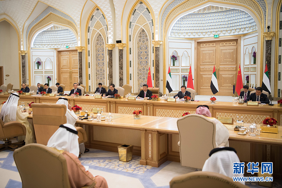 7月20日,國(guó)家主席習(xí)近平在阿布扎比同阿聯(lián)酋副總統(tǒng)兼總理穆罕默德、阿布扎比王儲(chǔ)穆罕默德舉行會(huì)談。 新華社記者李學(xué)仁攝