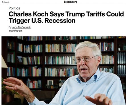 而在上周末剛剛結(jié)束的這么一場為期三天、并有數(shù)百人參加的活動上,科赫兄弟中年長的哥哥查爾斯·科赫就公開宣布他對美國政府的貿(mào)易戰(zhàn)行為很擔憂,認為美國對中國等多個國家揮舞的關稅大棒將令美國經(jīng)濟面臨“災難性”的衰退風險。