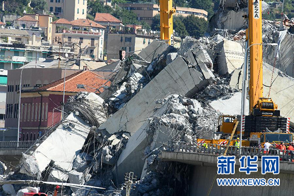 意大利北部熱那亞地區(qū)的莫蘭迪公路橋14日發(fā)生垮塌。該公路橋建于上世紀(jì)60年代,是連接A10公路與熱那亞城西部的一座主要公路橋,橋長(zhǎng)1182米、寬18米,最高處離地面90米。橋面垮塌時(shí),路面有超過30輛機(jī)動(dòng)車在行駛。當(dāng)?shù)孛襟w援引民事保護(hù)部門和消防部門官員的話說,事故原因可能是橋體存在結(jié)構(gòu)問題。