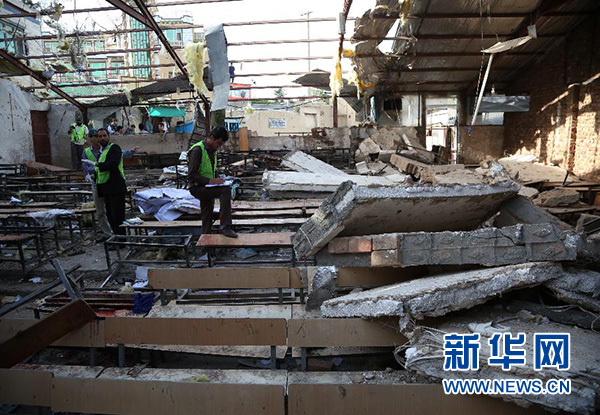 新華社報道員在現(xiàn)場看到,此次襲擊威力巨大,遇襲教室內(nèi)的天花板在爆炸中嚴(yán)重受損,從黑板、座椅到地面,到處都能看到尚未來得及清理的血跡,學(xué)員們的課本、文具等四處散落。教室外不時有家長趕來,急切打聽自家孩子的下落。