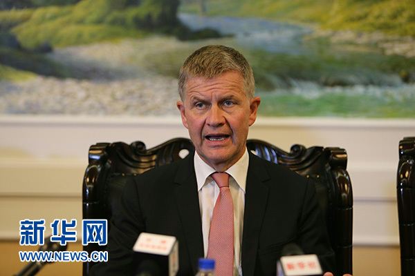 8月24日,在朝鮮平壤,聯(lián)合國(guó)副秘書長(zhǎng)兼環(huán)境規(guī)劃署執(zhí)行主任索爾海姆在記者會(huì)上發(fā)言。新華社記者 程大雨 攝