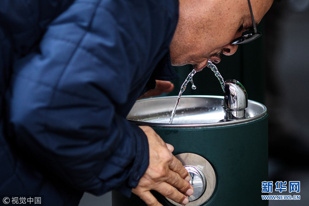 當?shù)貢r間2018年8月28日,英國倫敦,民眾在公共飲水機旁飲水。倫敦市長近日引進了20個新的公共飲水機,鼓勵人們自帶杯子取水喝,從而減少塑料垃圾。 (圖片來源:視覺中國)