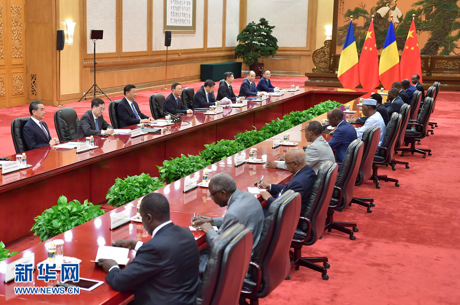 9月5日,國家主席習(xí)近平在北京人民大會堂會見乍得總統(tǒng)代比。 新華社記者 丁林 攝