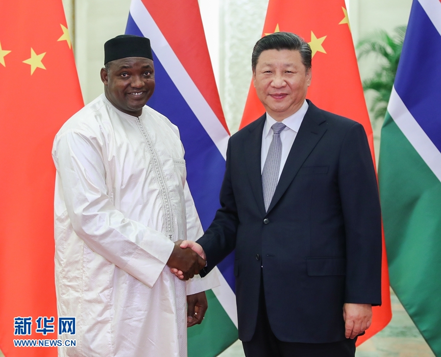 習(xí)近平歡迎岡比亞總統(tǒng)首次出席中非合作論壇會(huì)議,指出這對(duì)中岡關(guān)系、中非關(guān)系、論壇建設(shè)均具有重要意義。習(xí)近平強(qiáng)調(diào),中岡復(fù)交2年多來(lái),雙方友好合作全面、順利推進(jìn),雙邊關(guān)系發(fā)展得很好、很快,中方對(duì)兩國(guó)關(guān)系發(fā)展取得的成果感到滿意。中方贊賞總統(tǒng)先生和岡比亞政府堅(jiān)持一個(gè)中國(guó)原則,愿同岡方繼續(xù)把握好兩國(guó)關(guān)系的大方向,不斷增進(jìn)政治互信,繼續(xù)在涉及彼此核心利益和重大關(guān)切問(wèn)題上相互堅(jiān)定支持。中方支持岡比亞政府“建設(shè)新岡比亞”的努力,愿加強(qiáng)務(wù)實(shí)合作,擴(kuò)大人文交流。中方支持岡方加強(qiáng)和平安全能力建設(shè)。