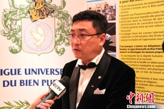 9月21日晚,中國(guó)工筆畫家崔景哲在巴黎榮獲全球公益聯(lián)盟文學(xué)(藝術(shù))金質(zhì)勛章,也是此次頒獎(jiǎng)典禮所有獲獎(jiǎng)?wù)咧形ㄒ灰晃恢袊?guó)人。圖為崔景哲接受媒體采訪。李洋 攝