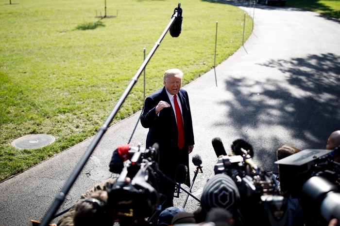 10月22日,在美國(guó)首都華盛頓,美國(guó)總統(tǒng)特朗普離開白宮前接受記者采訪。新華社發(fā)(沈霆攝)