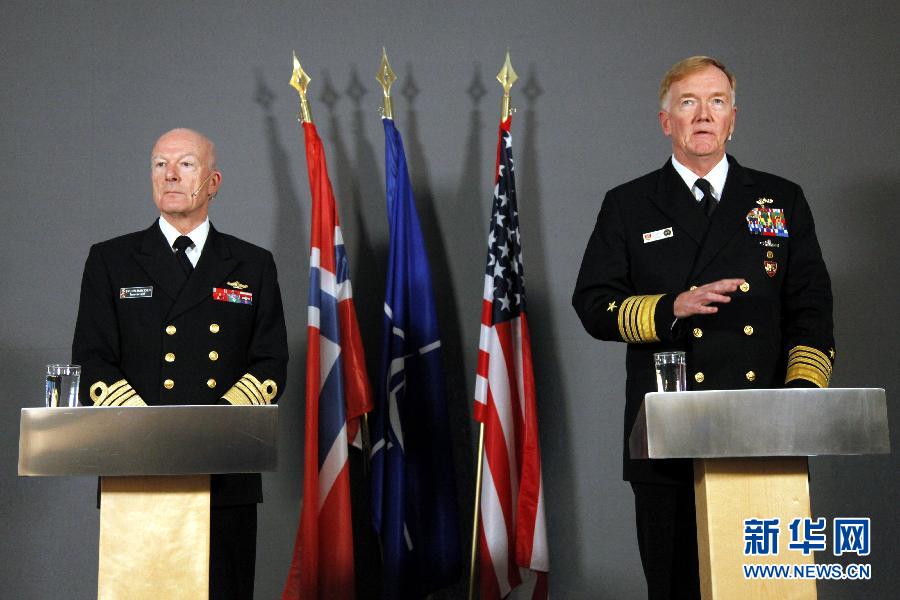 10月25日,在挪威首都奧斯陸,挪威國防司令、海軍上將哈康·布倫-漢森(左)和美國海軍上將詹姆斯·福戈介紹軍演情況。 當(dāng)日,北大西洋公約組織(北約)開始在挪威及其周邊地區(qū)舉行為期兩周的“三叉戟接點2018”聯(lián)合軍事演習(xí)。這是北約自冷戰(zhàn)結(jié)束以來規(guī)模最大的一次聯(lián)合軍演。 新華社記者 梁有昶 攝