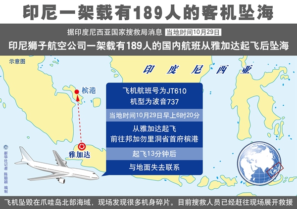 獅航這架載有189人的國內航班當天早上6時20分從雅加達起飛,前往邦加勿里洞省首府檳港,但在起飛13分鐘后與地面失去聯(lián)系。飛機隨后被確認墜海。