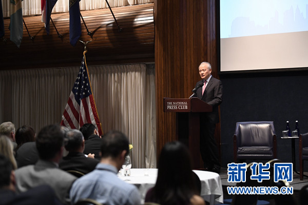 崔天凱當(dāng)天在美全國(guó)記者協(xié)會(huì)舉行的紀(jì)錄片《善良的天使》觀影活動(dòng)上致辭說(shuō),許多人對(duì)近期中美關(guān)系形勢(shì)深感憂慮,在這充滿挑戰(zhàn)的時(shí)刻,中美關(guān)系發(fā)展更需要“善良的天使”。