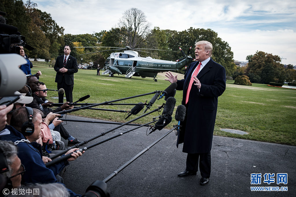 當(dāng)?shù)貢r間2018年10月31日,美國華盛頓,美國總統(tǒng)特朗普啟程前往佛羅里達(dá)州出席競選集會,在白宮南草坪發(fā)表講話。特朗普稱,計劃部署在美墨邊境的現(xiàn)役軍人數(shù)量或增加至15000人,以嚴(yán)防來勢洶洶的“大篷車”移民。(圖片來源:視覺中國)