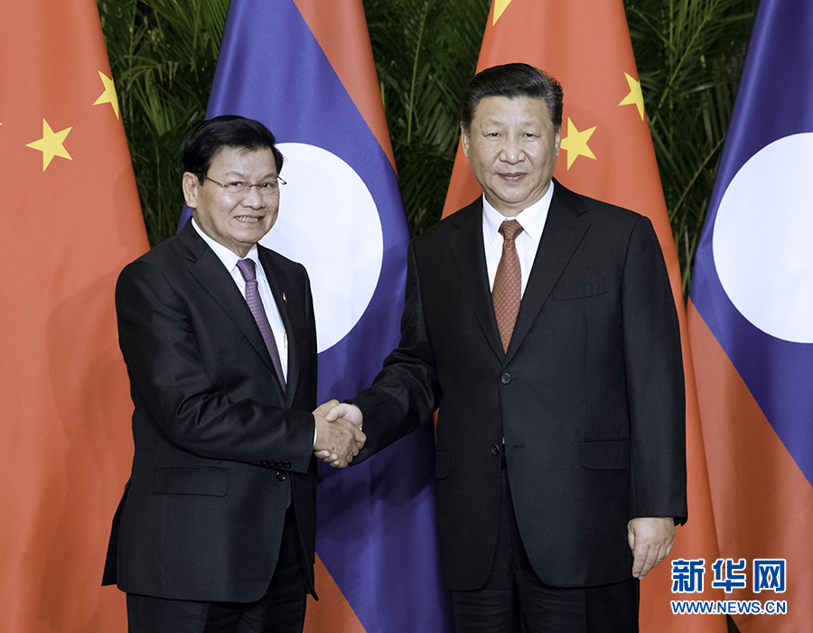 11月4日,國(guó)家主席習(xí)近平在上海會(huì)見(jiàn)老撾總理通倫。 新華社記者 丁海濤 攝