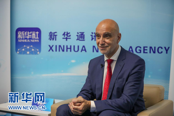 圖為達(dá)能公司高級副總裁帕斯卡爾·德彼得里尼接受新華網(wǎng)獨家專訪。新華網(wǎng) 郭小天攝