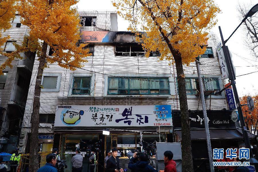 這是11月9日在韓國首爾拍攝的發(fā)生火災(zāi)的建筑。 新華社記者王婧嬙攝