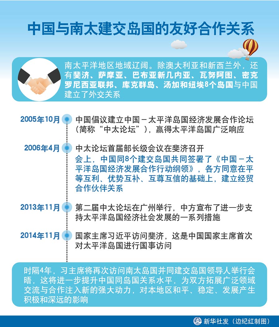 新華社北京11月15日電 新聞背景:中國(guó)與南太建交島國(guó)的友好合作關(guān)系