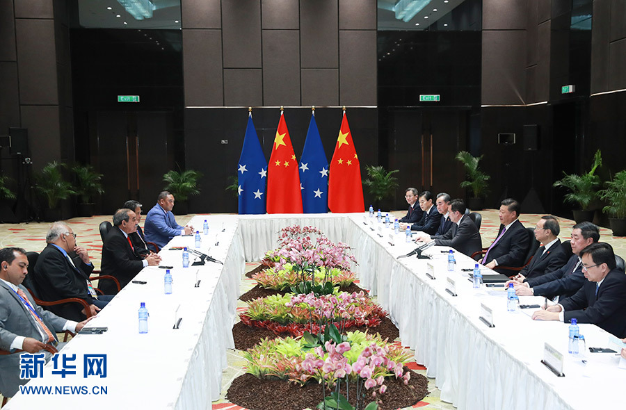 11月16日,國(guó)家主席習(xí)近平在莫爾茲比港分別會(huì)見(jiàn)建交太平洋島國(guó)領(lǐng)導(dǎo)人。這是習(xí)近平會(huì)見(jiàn)密克羅尼西亞聯(lián)邦總統(tǒng)克里斯琴。 新華社記者 龐興雷 攝