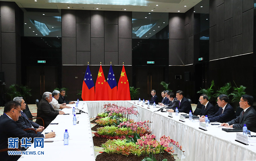 在會(huì)見(jiàn)薩摩亞總理圖伊拉埃帕?xí)r,習(xí)近平指出,當(dāng)前中薩關(guān)系面臨新的發(fā)展機(jī)遇。雙方要秉持高度政治互信,繼續(xù)在涉及彼此核心利益和重大關(guān)切問(wèn)題上相互支持,在“一帶一路”框架內(nèi)拓展各領(lǐng)域合作,擴(kuò)大人文交流。中方支持薩摩亞舉辦2019年太平洋運(yùn)動(dòng)會(huì),將繼續(xù)支持薩方提高應(yīng)對(duì)氣候變化能力。