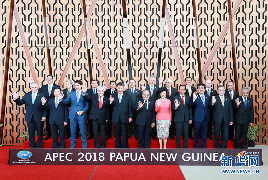 11月17日,國家主席習近平應邀出席在巴布亞新幾內(nèi)亞莫爾茲比港舉行的亞太經(jīng)合組織工商領導人峰會并發(fā)表題為《同舟共濟創(chuàng)造美好未來》的主旨演講。同日,習近平還出席了亞太經(jīng)合組織領導人同工商咨詢理事會代表對話會。對話會前,習近平同其他亞太經(jīng)合組織成員經(jīng)濟體領導人、代表合影。 新華社記者 龐興雷 攝