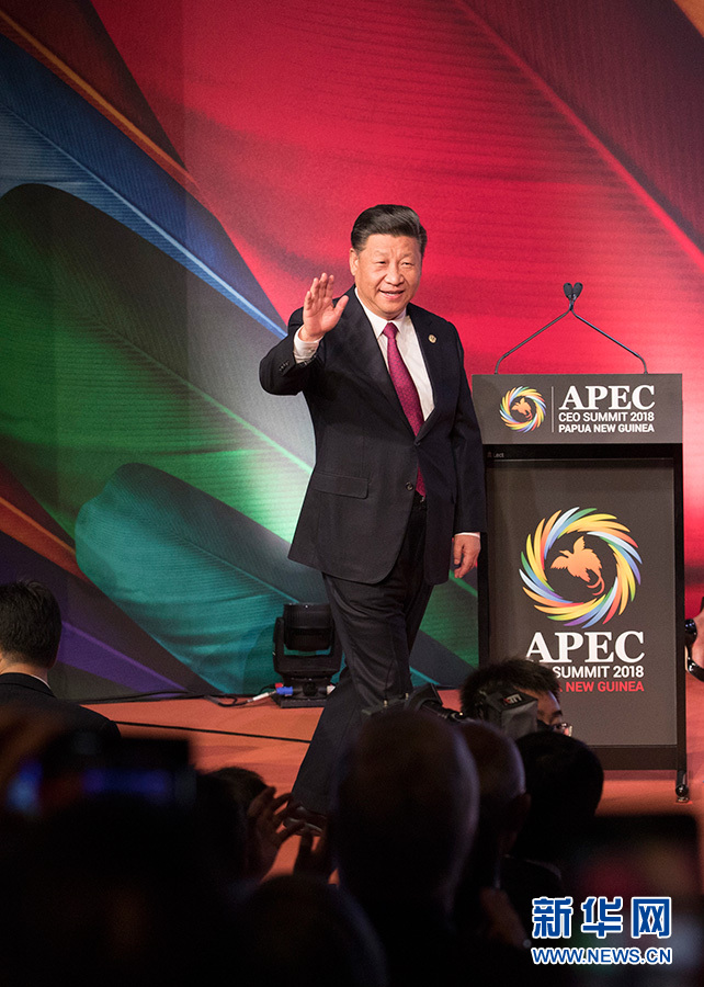 11月17日,國家主席習近平應邀出席在巴布亞新幾內(nèi)亞莫爾茲比港舉行的亞太經(jīng)合組織工商領導人峰會并發(fā)表題為《同舟共濟創(chuàng)造美好未來》的主旨演講。 新華社記者 鞠鵬 攝