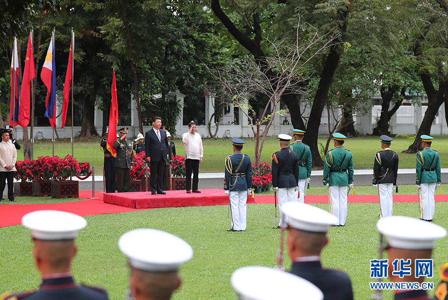 11月20日,國家主席習(xí)近平在馬尼拉同菲律賓總統(tǒng)杜特爾特舉行會(huì)談。會(huì)談開始前,習(xí)近平出席杜特爾特在總統(tǒng)府前草坪舉行的隆重歡迎儀式。 新華社記者 丁林 攝
