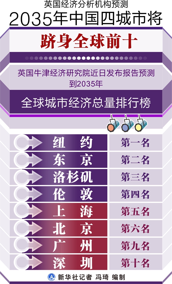 英國經濟分析機構預測2035年中國四城市將躋身全球前十 新華社記者 馮琦 編制