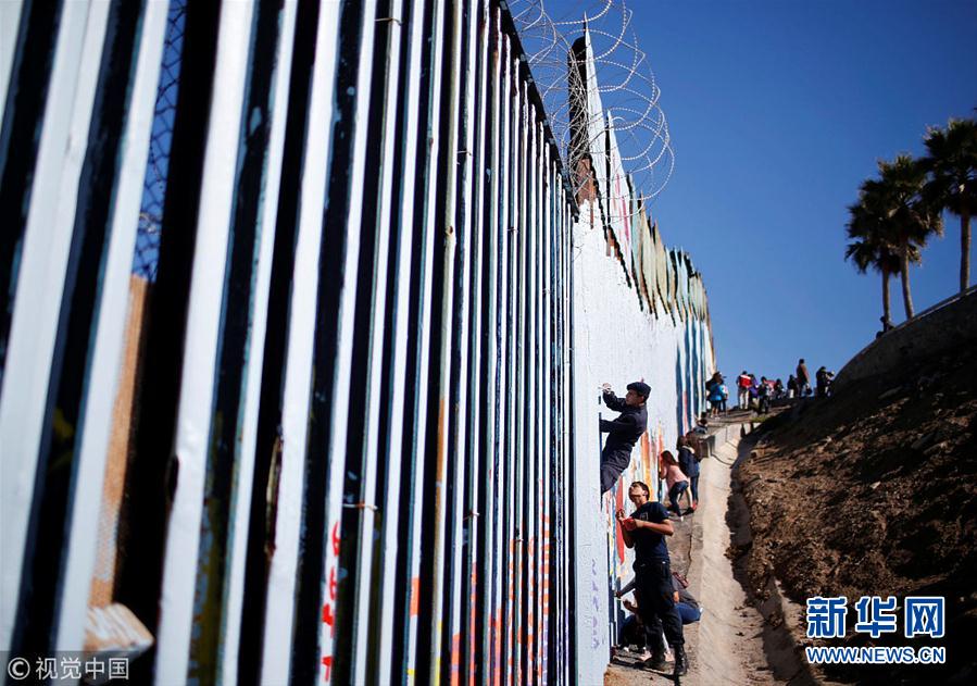 中美洲移民滯留墨西哥邊境 在美墨邊境墻上涂鴉