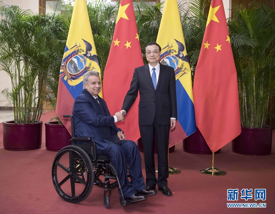 12月13日,國務(wù)院總理李克強(qiáng)在北京人民大會堂會見來華進(jìn)行國事訪問的厄瓜多爾總統(tǒng)莫雷諾。 新華社記者 李濤 攝
