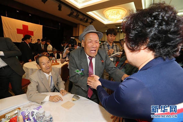 8月24日,韓朝離散家屬在朝鮮金剛山參加見面活動。第21次韓朝離散家屬團聚活動第二輪會面8月24日在朝鮮金剛山開始進行。24日至26日期間,共有81名朝方離散家屬同韓方親屬共度約12個小時的團聚時光。新華社/韓朝離散家屬團聚活動韓方聯(lián)合報道團