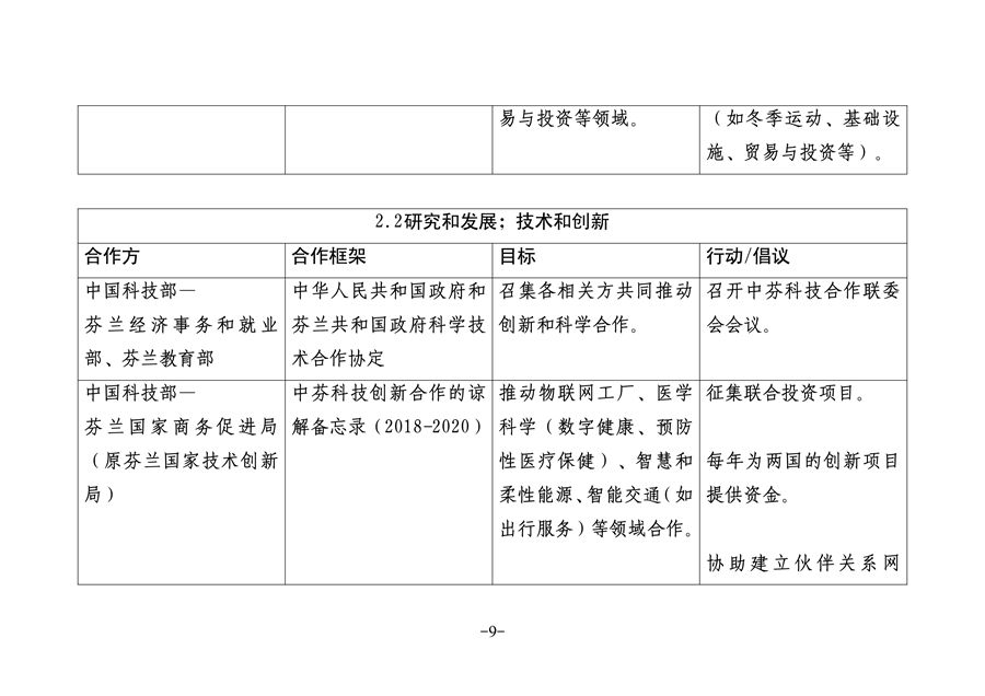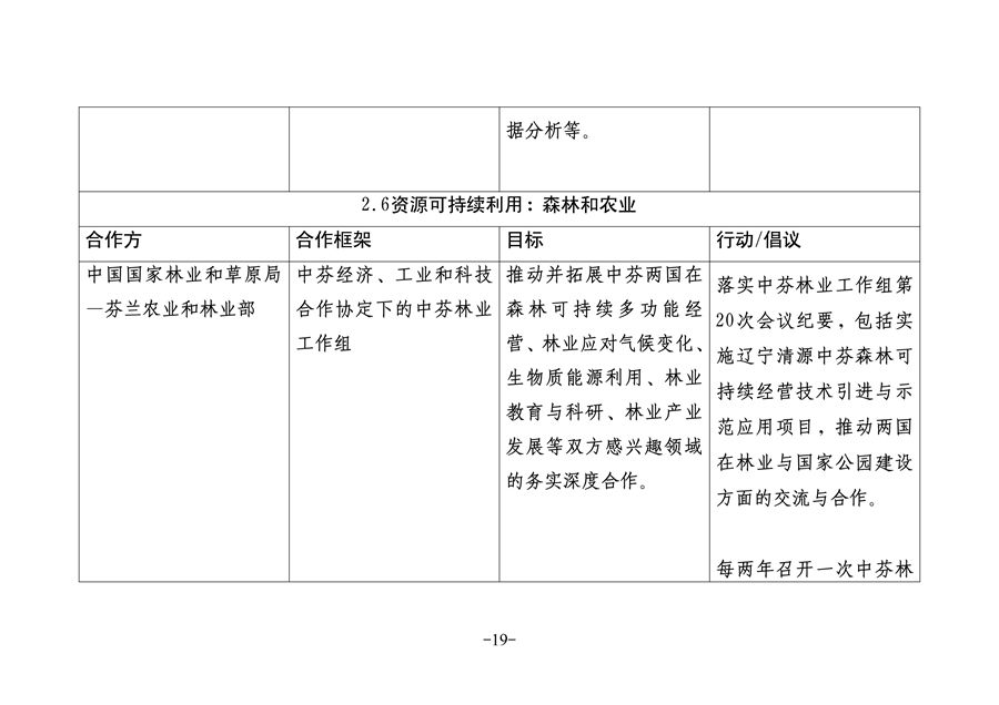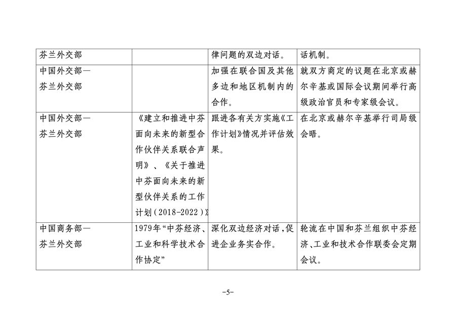 關于推進中芬面向未來的新型合作伙伴關系的聯(lián)合工作計劃(2019-2023)