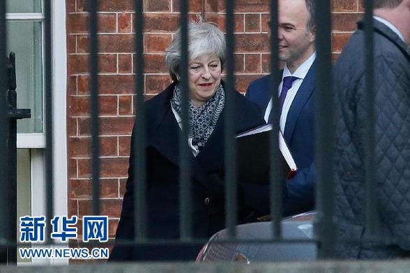 1月14日,在英國倫敦,英國首相特雷莎·梅(左)離開唐寧街10號準備前往議會下院。 新華社發(fā)(蒂姆·愛爾蘭攝)