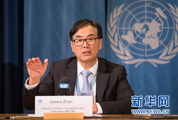 1月18日,在瑞士日內(nèi)瓦,聯(lián)合國(guó)貿(mào)易和發(fā)展會(huì)議(貿(mào)發(fā)會(huì)議)投資和企業(yè)司司長(zhǎng)詹曉寧出席報(bào)告發(fā)布會(huì)。 新華社記者 徐金泉 攝
