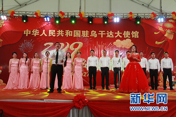 1月27日,在烏干達(dá)坎帕拉,人們?cè)谥袊?guó)駐烏干達(dá)使館春節(jié)招待會(huì)上表演。 新華社記者 張改萍 攝