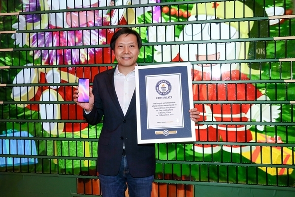 2018年12月24日,雷軍攜小米團(tuán)隊(duì)向吉尼斯世界紀(jì)錄“最大的手機(jī)動(dòng)態(tài)拼圖”稱號發(fā)起挑戰(zhàn)。