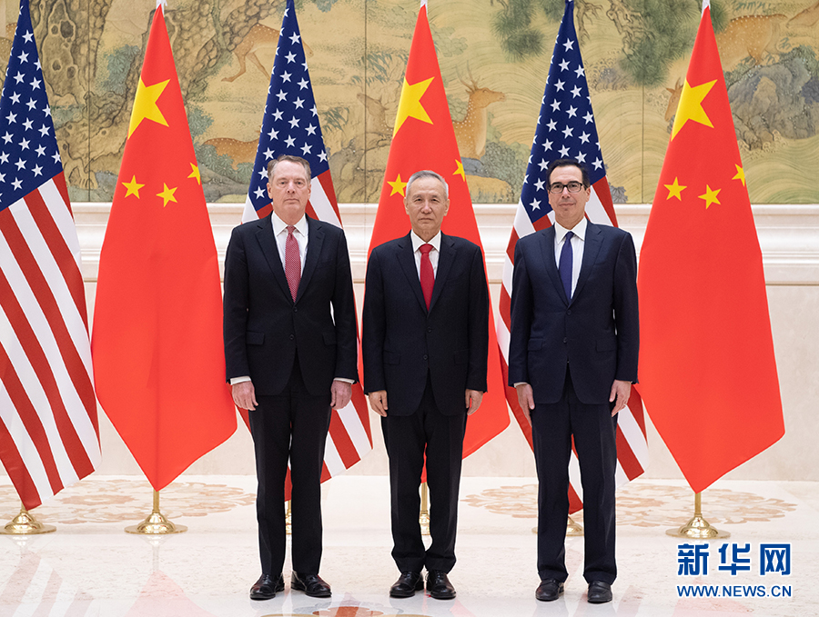 2月14日上午,中共中央政治局委員、國務(wù)院副總理、中美全面經(jīng)濟對話中方牽頭人劉鶴與美國貿(mào)易代表萊特希澤、財政部長姆努欽共同主持中美經(jīng)貿(mào)高級別磋商開幕式。本輪高級別磋商定于14-15日在北京舉行。 新華社記者申宏攝
