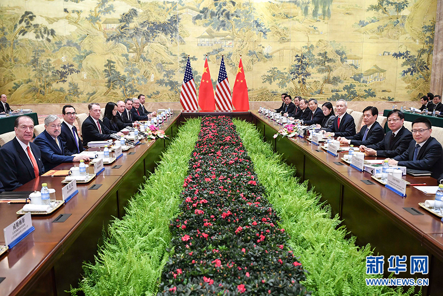 2月14日上午,中共中央政治局委員、國務(wù)院副總理、中美全面經(jīng)濟對話中方牽頭人劉鶴與美國貿(mào)易代表萊特希澤、財政部長姆努欽共同主持中美經(jīng)貿(mào)高級別磋商開幕式。本輪高級別磋商定于14-15日在北京舉行。