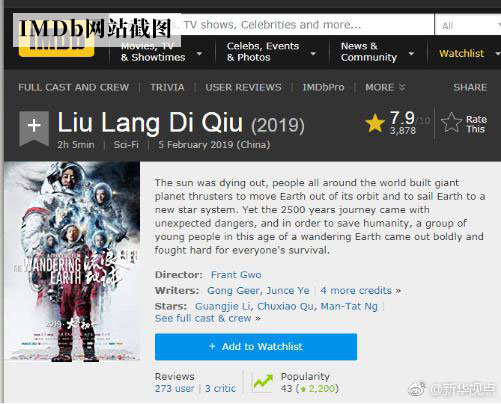 《流浪地球》在國內(nèi)天天刷屏,它在大洋彼岸口碑又如何呢?