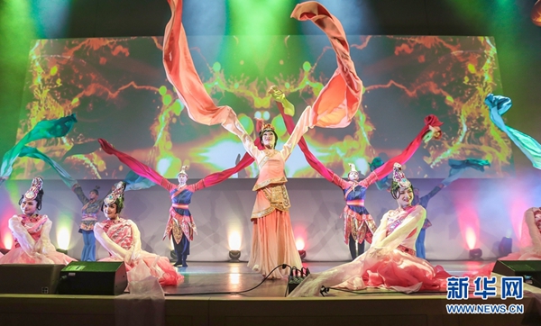 2月16日,在愛爾蘭首都都柏林,來自中國(guó)湖北省歌劇舞劇院的演員在春節(jié)聯(lián)歡晚會(huì)上表演舞蹈。新華社發(fā)