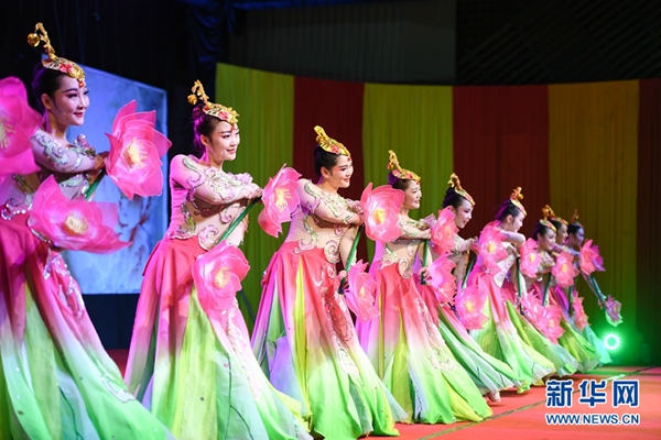 2月17日,在肯尼亞首都內(nèi)羅畢,演員在2019“四海同春”慰?jī)S文藝晚會(huì)上表演舞蹈《荷塘月色》。 新華社記者 李琰 攝